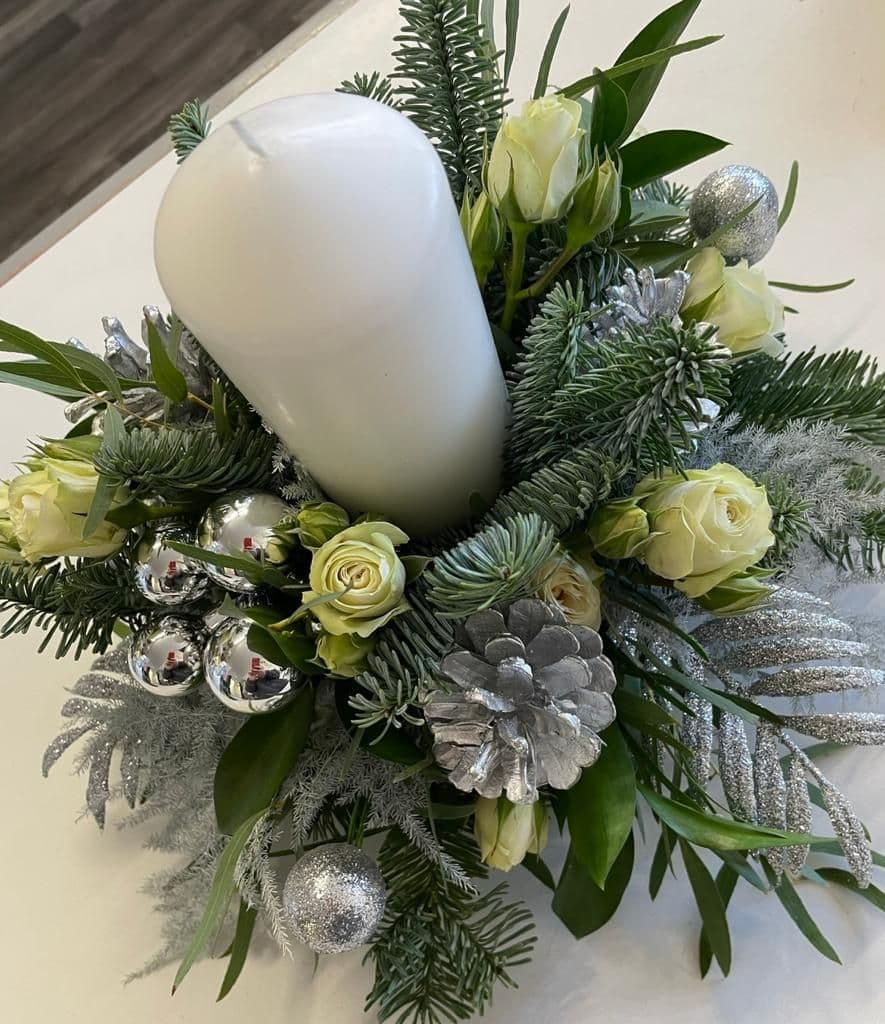 A Fresh crisp White Candle Design for your table with all the seasonal accessories.